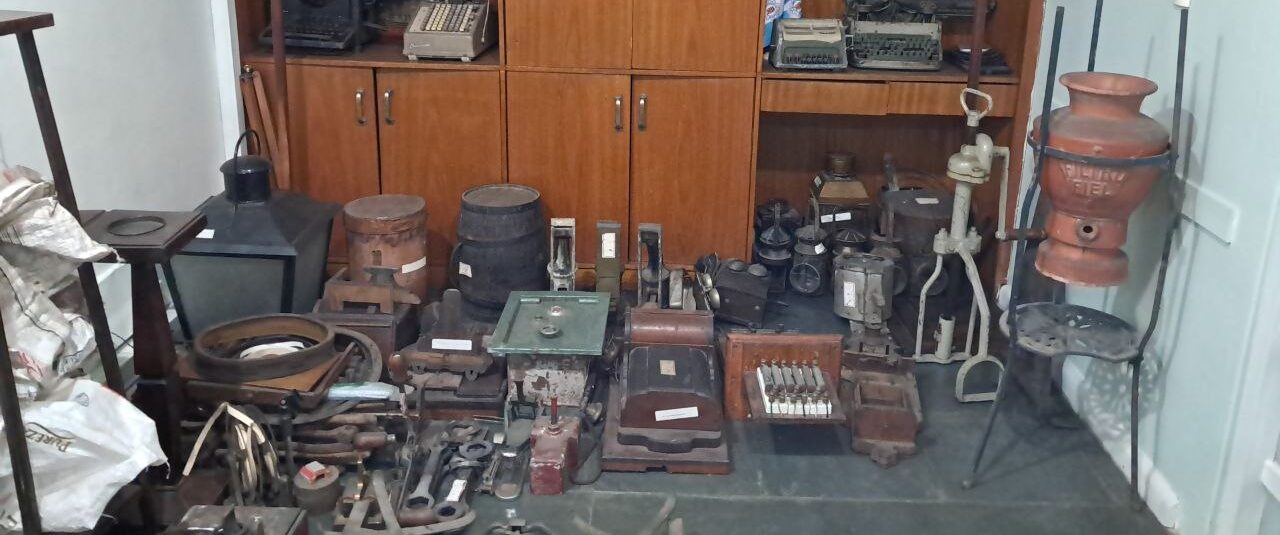 A sede da AEEFL é composta por uma sala de recepção, onde estão guardadas peças de um valioso acervo museológico, além de uma sala para reuniões e outras comodidades, como copa e banheiro. Tivemos a oportunidade de conhecer as peças, que incluem máquinas de escrever, relógios, placas e até um gravador de som, entre outras raridades e curiosidades. Esses itens podem integrar o acervo do futuro museu, mas, para isso, serão necessários alguns procedimentos, já que tudo está devidamente catalogado pelo IPHAN.
